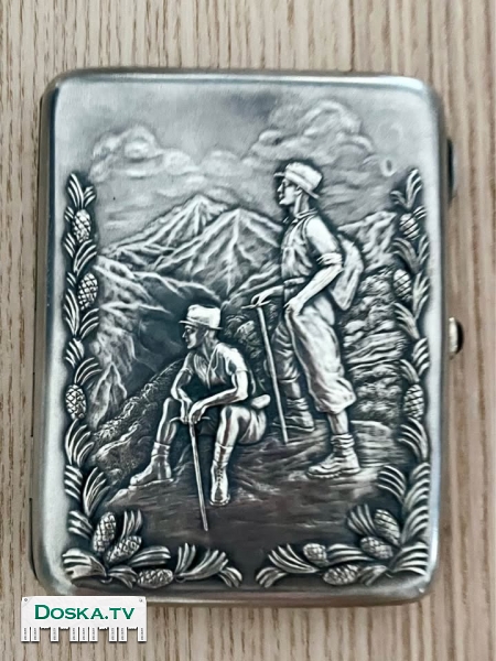 серебряный сюжетный портсигар