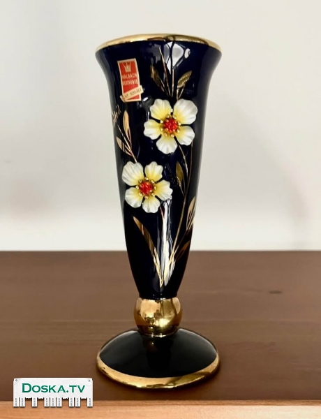 Винтажная ваза Halbach Echt Cobalt кобальтовый синий фарфор с золотым 20 карат покрытием 1960-е годы германия высота 18.5см в идеальном состоянии цена 180 шек петах-тиква самовывоз все вопросы по телефону
