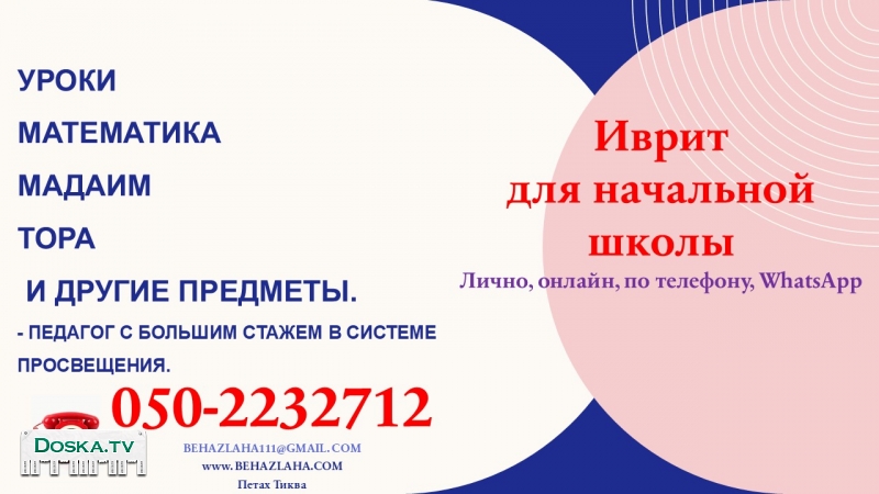 Объявление № 7061451 Категория: Репетитор Регион: Центр Израиля Город: Тель Авив